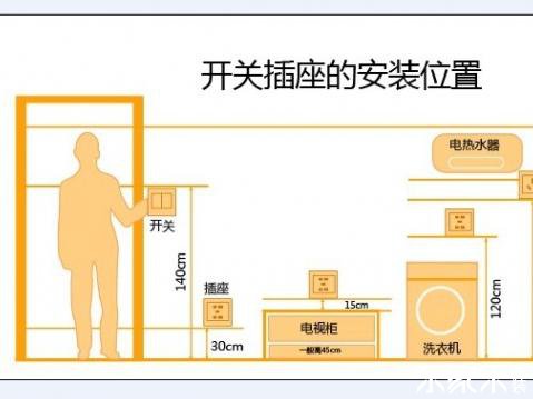 1.電控開關:電源開關離地面最好在120~135厘米之間(總開關的高度和成年肩高);